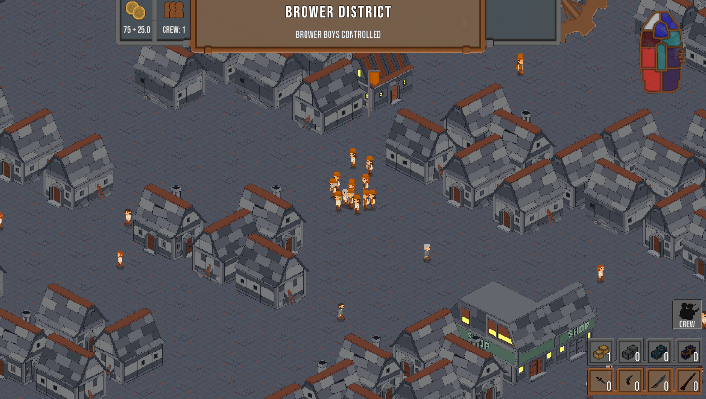 You lead a small crew within one of six factions fighting for control of the ship's districts. Recruit civilians, upgrade weapons, and survive grid-based tactical combat. The world moves without you - factions declare wars, crews clash in the streets, territory changes hands. You're not the chosen one. You're just trying to come out on top.
